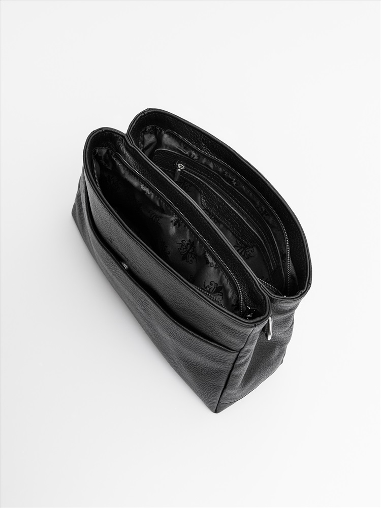 Элегантная сумка кросс-боди среднего размера из натуральной кожи с удобным длинным регулируемым ремнём и дополнительной ручкой на карабинах. Трапециевидная форма, расширяющаяся к низу, обеспечивает удобную организацию пространства с двумя основными отделениями на молнии и двумя внутренними карманами. На передней части — стильное тиснение и функциональный карман на кнопке, а на задней — дополнительный карман на молнии для мелочей. Практичная и стильная, эта сумка идеально подходит для повседневного использования, сочетая в себе удобство и элегантный дизайн. Универсальный аксессуар, который дополнит любой образ.