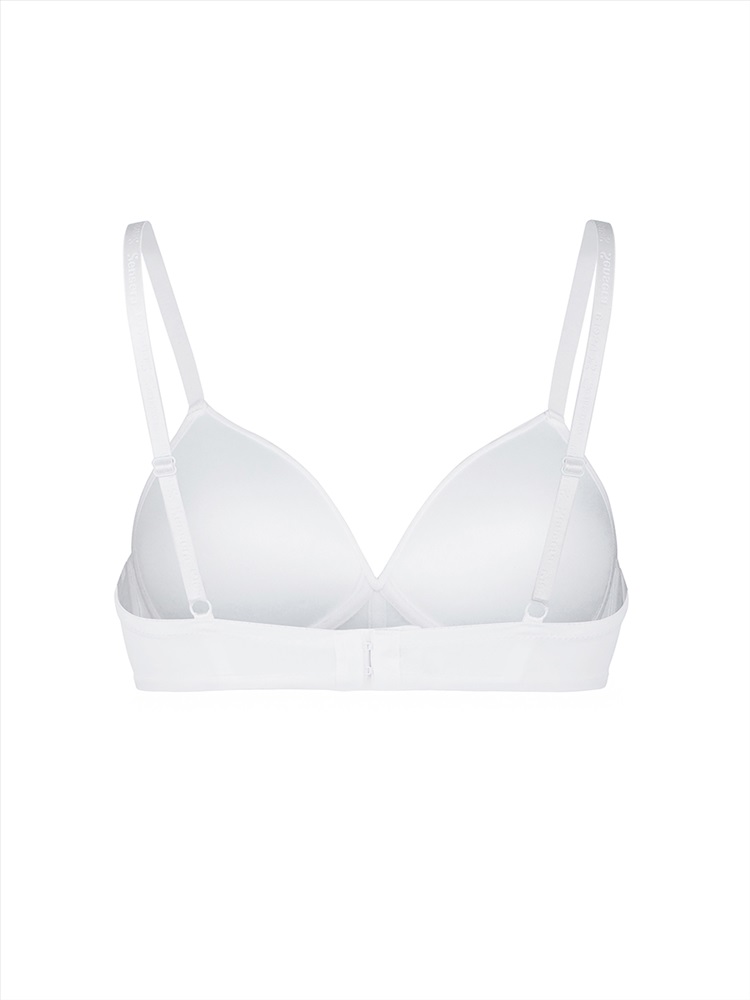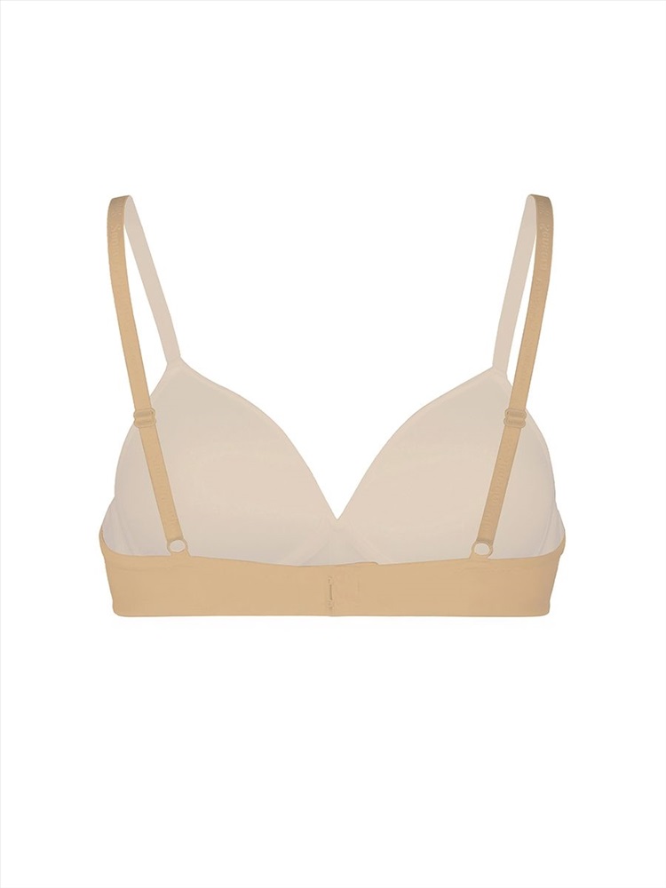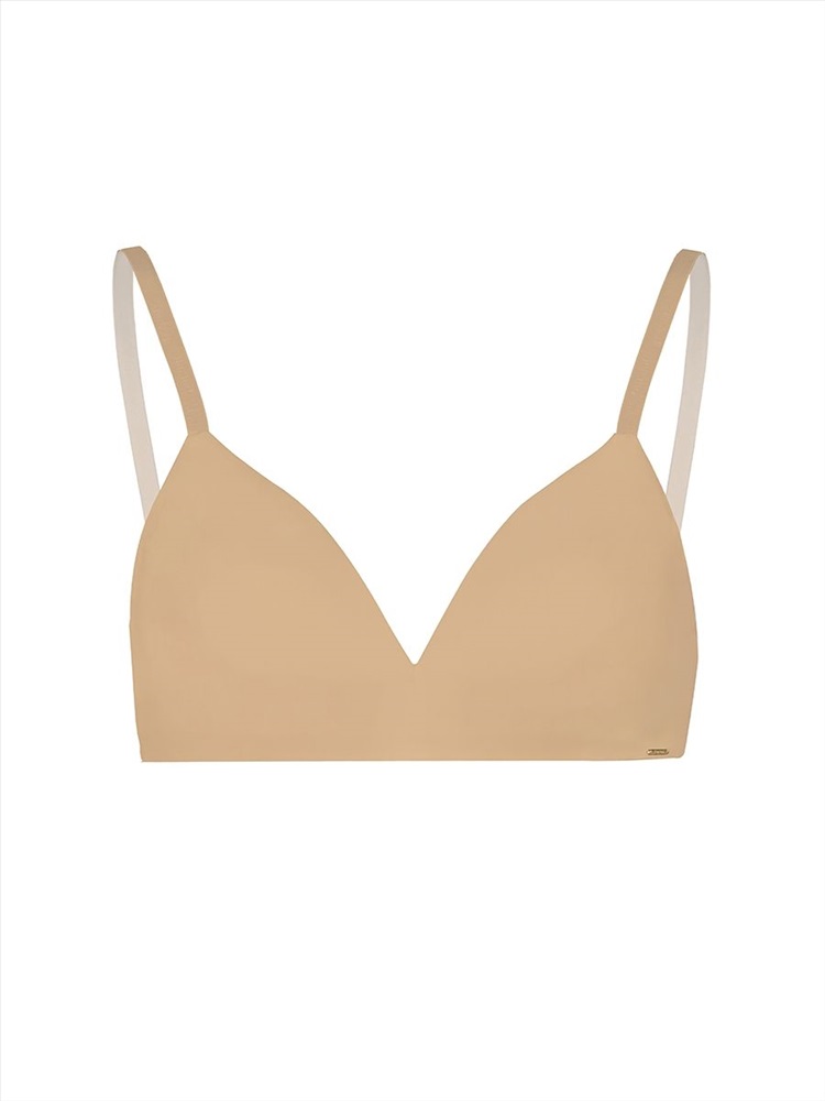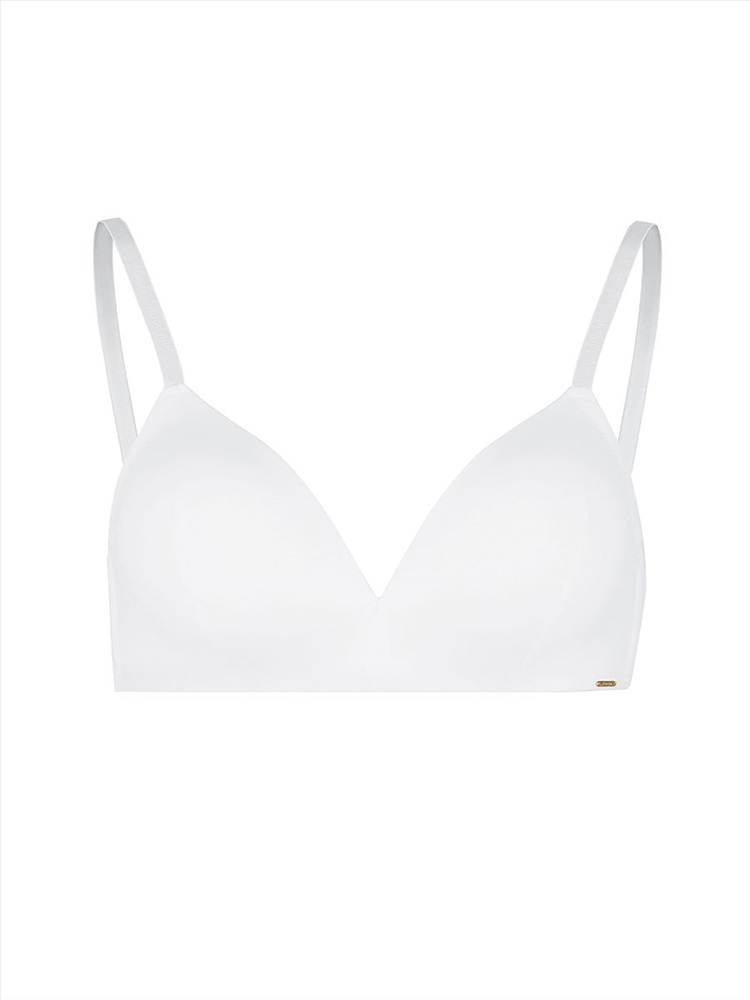 Гладкий базовый бюстгальтер Padded Triangle bra с чашками из тонкого формоованного поролона, без каркасов, без push-up и с боковыми корсетными вставками.. Застежка на 2 крючка и 3 ряда петель.Эластичные бретели можно откорректировать по длине. Бретели не съемные. Ширина бретелей на объемы 70, 75 и 80 см с чашками А,В,С - 10мм. Изделие украшают брендированные бретели и металлическая капелька с первой буквой наименования бренда. Состав:85%Полиамид,15%Полиуретан.