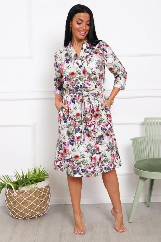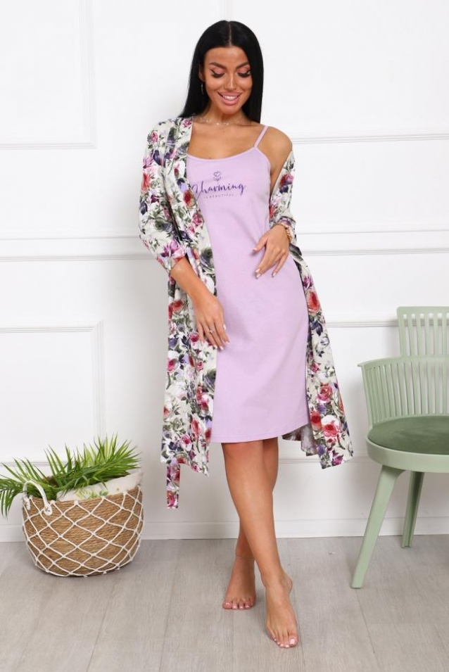 Пеньюар с сорочкой на тонких бретелях. Комфорт 100%-ого хлопка и удобная посадка изделий. Женственный нежный принт пеньюара и лаконичный принт на сорочке.