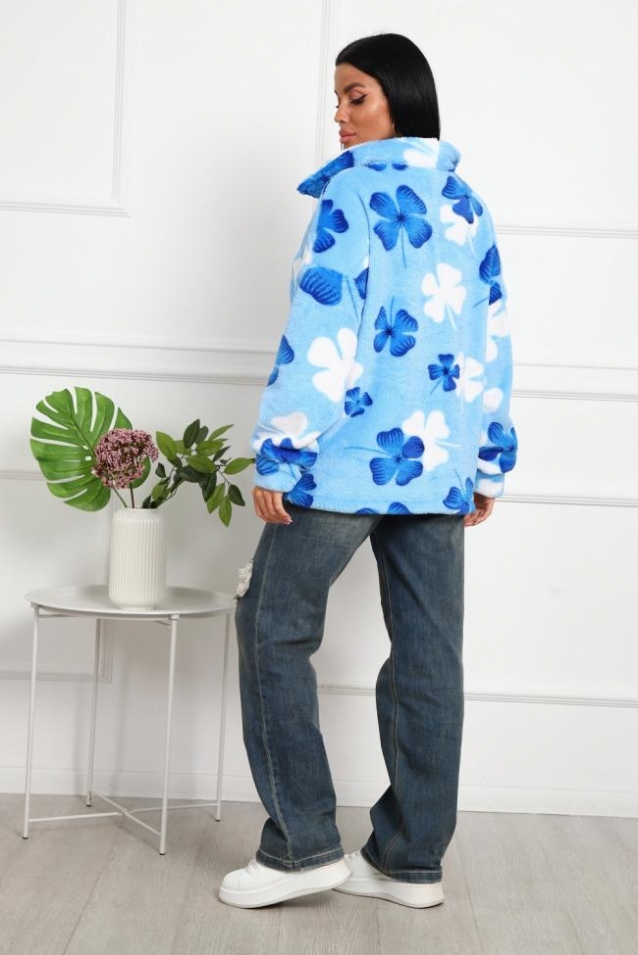 Толстовка женская свободного кроя, из уютного теплого велсофта, с комфортным воротом на молнии, с двумя боковыми карманами. Не мнётся, легко стирается.