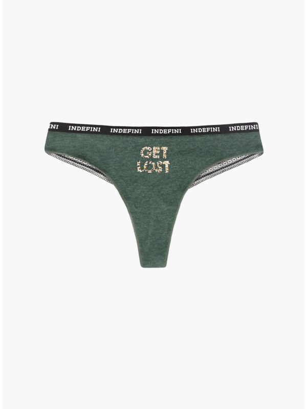 Украшением данной модели является надпись на передней части, а сзади изделие украшено кружевом.