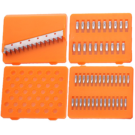 Оврощерезка MAYER&BOCH со сменными ножами в количестве 5 штук из высококачественной нержавеющей стали. Такой набор поможет без труда очистить и нарезать продукты кубиками, ломтиками или соломкой. Удобна в применении. Любая современная хозяйка по достоинству оценит функциональность и практичность данного изделия.