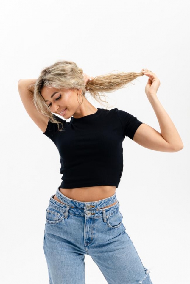 Укороченный футболка женская из кашкорсе. Популярная модель среди покупательниц. Отличная ткань, качественный пошив. Идеально подойдет для прогулок и занятий спортом. Футболка прекрасно смотрится в летние дни, под пиджаком или кардиганом в прохладные осенние вечера и зимние дни.