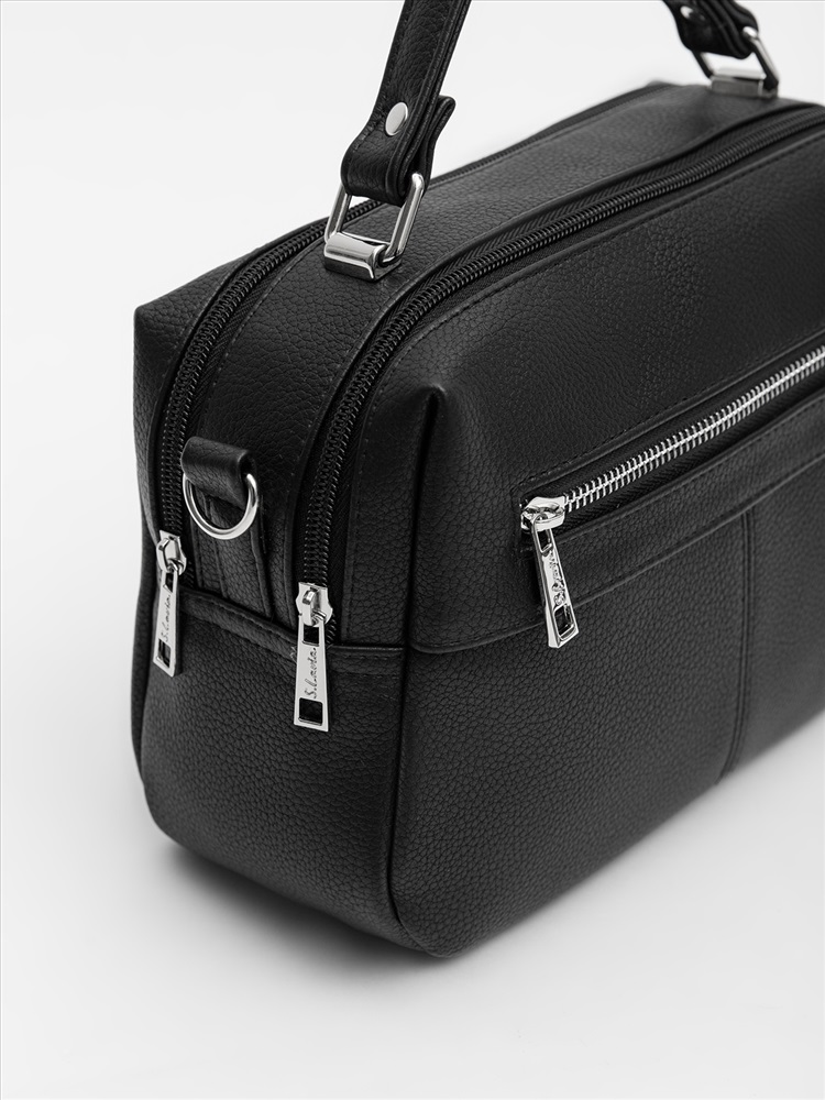 Модель: Саквояж | Саквояж Цвет: Чёрный | Чёрный Материал: Винилискожа | Винилискожа Бренд: S.Lavia Застежка: Молния Виды карманов: Наружный спереди,Наружный сзади,Внутренний открытый,Внутренний на молнии Внешний карман: Да Внутренний карман: Да Высота: 17 Высота ручки: 9 Группа товаров: Сумки Длина: 26 Длина ремня (см): 125 Вмещает А4: Нет Категория: Сумки Женские Количество карманов: 4 Количество отделений: 2 Способ ношения: На плечо,в руку Наличие длинного ремня: Да Подклад: Полиэстер Пол: Женский Регулируемый ремень: Да Ремень: Длинный Родитель: 1500 Ручки: Короткие Страна дизайна: Италия Страна производства: Россия Трансформер: Нет Ширина: 9.5 Фактура: Кожаный Форма жесткости: Мягкая Фурнитура: Серебро Габарит: S Температурный режим: От -35° до +35° Сезон: Всесезонный Штрихкод: 2808405021365 Элегантный саквояж размера S — идеальное сочетание шарма и современной практичности. Два просторных отдела на молнии и три удобных кармана (включая два внешних) обеспечат безупречный порядок ваших вещей. Короткая изящная ручка создана для ношения в руке, а регулируемый длинный ремень позволяет носить сумку через плечо. Внутри вас ждёт продуманная организация: два подкладочных кармана (один на молнии) для самых важных мелочей. Сдержанный дизайн и качественная фурнитура делают эту сумку стильным аксессуаром на каждый день. Комментарии к товару