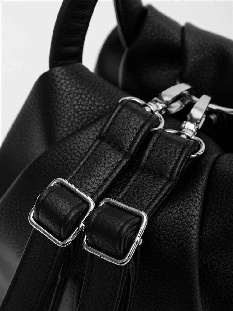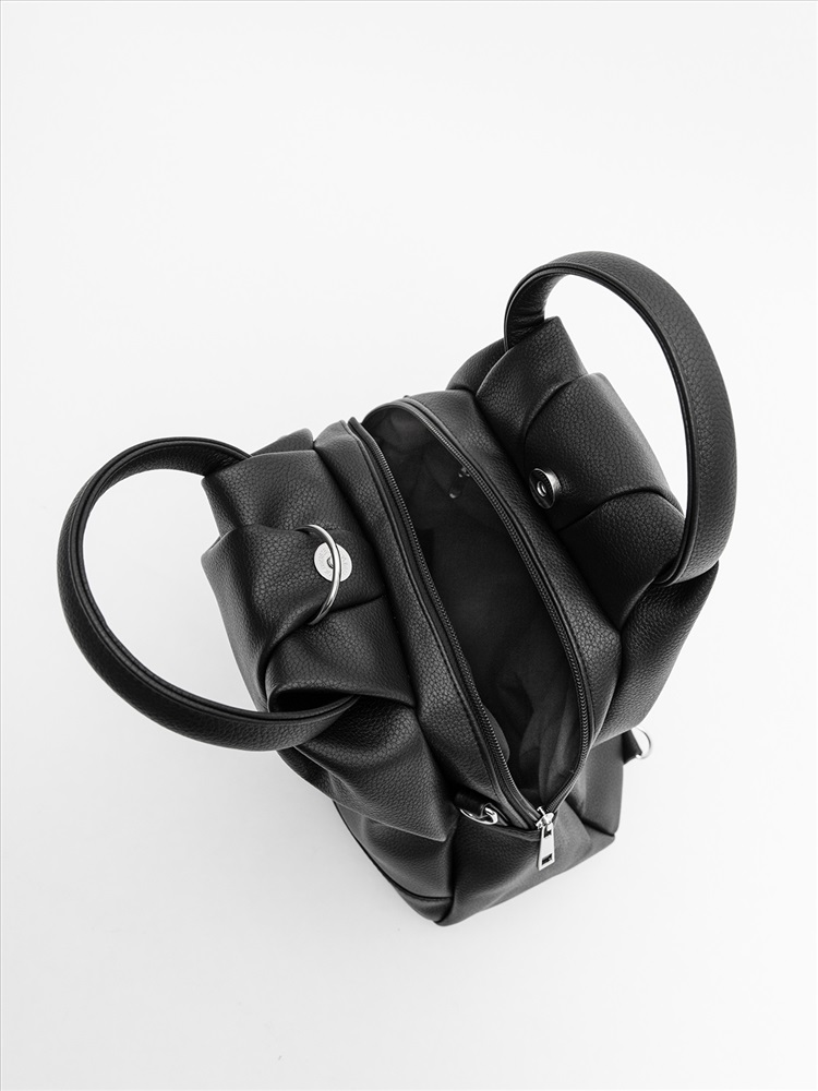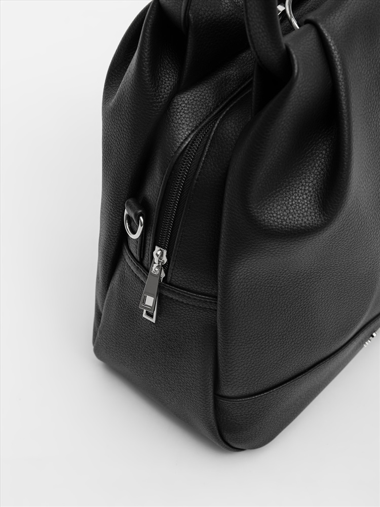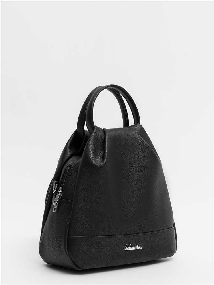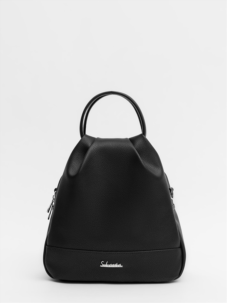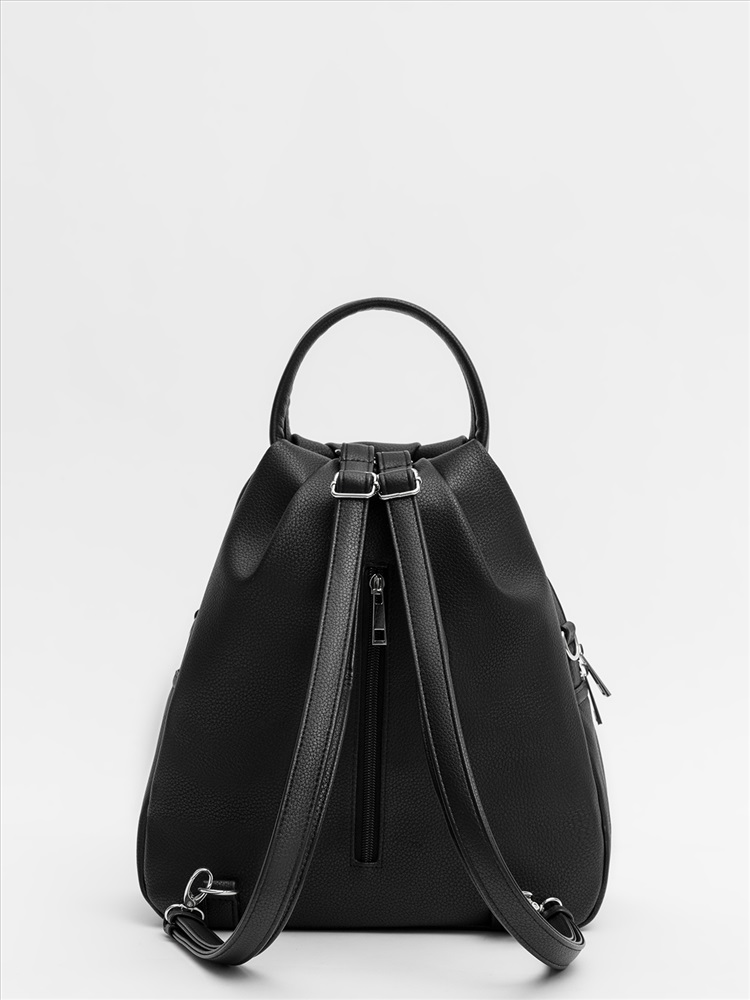 Женская сумка-рюкзак трансформер — универсальный аксессуар среднего размера для повседневного использования. Оснащена двумя круглыми ручками, её удобно носить в руке как сумку, а при необходимости — использовать как рюкзак благодаря съёмным регулируемым лямкам. Модель имеет одно вместительное отделение, внутренний и задний карманы для организации необходимых мелочей. Практичный дизайн сочетается с элегантностью и подходит для любого образа.