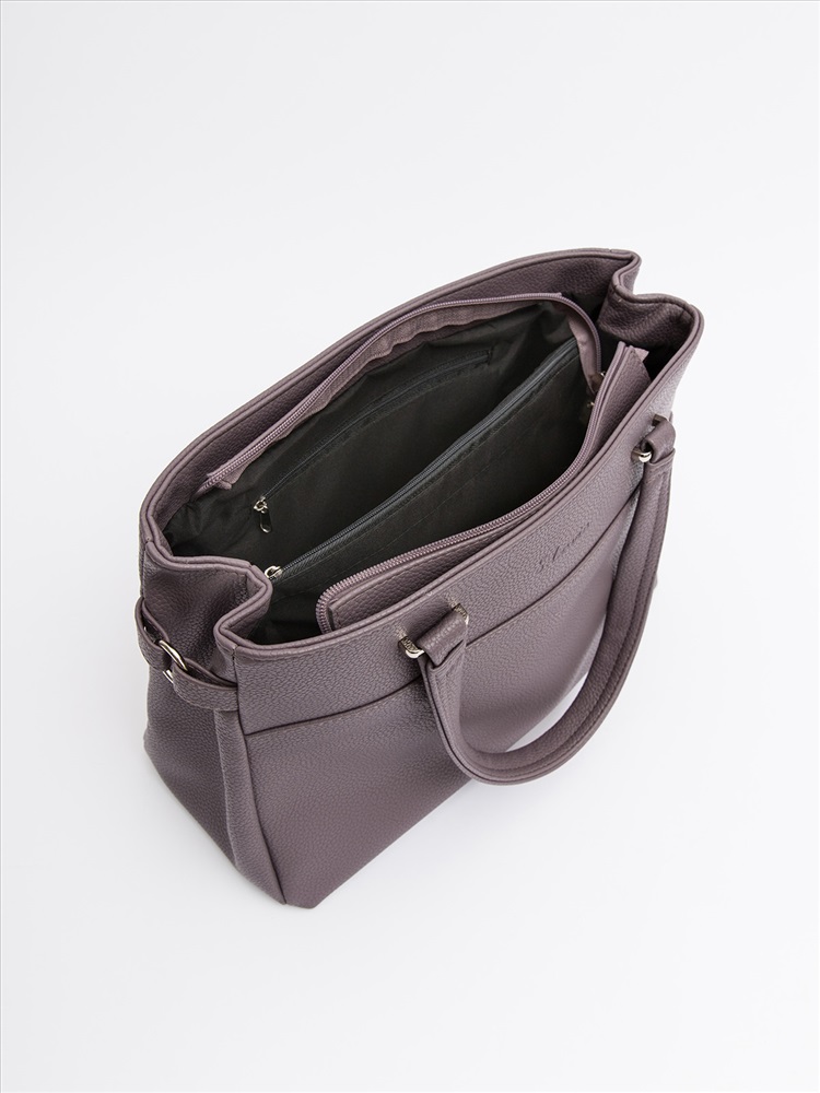 Модель: Тоут | Тоут Цвет: Фиолетовый | Светло-сиреневый Материал: Винилискожа | Винилискожа Бренд: S.Lavia Застежка: Молния Виды карманов: Наружный сзади,Внутренний открытый,Внутренний на молнии Внешний карман: Да Внутренний карман: Да Высота: 25 Высота ручки: 16 Группа товаров: Сумки Длина: 33 Длина ремня (см): 105 Вмещает А4: Нет Категория: Сумки Женские Количество карманов: 5 Количество отделений: 1 Способ ношения: На плечо Наличие длинного ремня: Да Подклад: Полиэстер Пол: Женский Регулируемый ремень: Да Ремень: Длинный Родитель: 1509 Ручки: Средние Страна дизайна: Италия Страна производства: Россия Трансформер: Нет Ширина: 15 Фактура: Кожаный Форма жесткости: Мягкая Фурнитура: Серебро Габарит: M Температурный режим: От -35° до +35° Сезон: Всесезонный Штрихкод: 2808405015401 Тоут среднего размера — элегантный аксессуар для работы и города. Трапециевидная форма с фигурным подрезом и разрезной передней деталью создает строгий, но выразительный силуэт. Центральный вход на молнии и продуманная внутренняя организация — перегородка с молнией и два стандартных кармана — позволяют удобно разместить все необходимое. Дополнительный комфорт обеспечивает прорезной карман на молнии сзади, а в комплекте идет длинный регулируемый ремень на карабинах, предлагая вариативность ношения. Этот тоут станет идеальным выбором как для деловых встреч, где важно подчеркнуть статус, так и для повседневной носки, когда нужно взять с собой множество вещей и сохранить их в порядке. Лаконичный дизайн с акцентными деталями дополнит любой образ, подчеркивая ваш безупречный вкус. Комментарии к товару