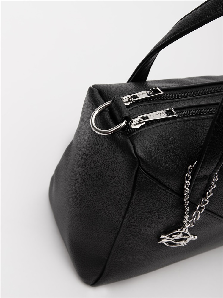 Носите его на коротких ручках или как кросс-боди — регулируемый съёмный ремень подстраивается под ваши предпочтения. Этот саквояж станет универсальным аксессуаром: дополнит и повседневный аутфит с джинсами, и женственный образ с платьем, и офисный стиль.