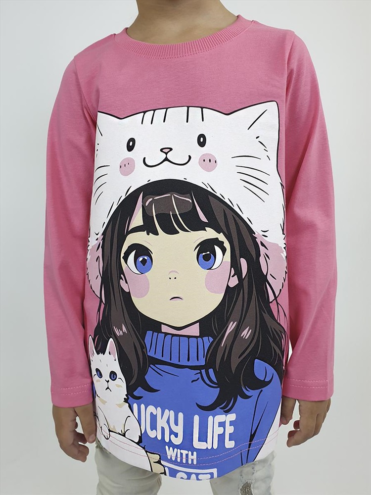 Джемпер-силуэт трапеция, перед с печатью. Рукав втачной, длинный. Горловина обработана ластиком, низ изделия и рукава подшиты.