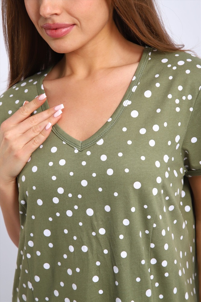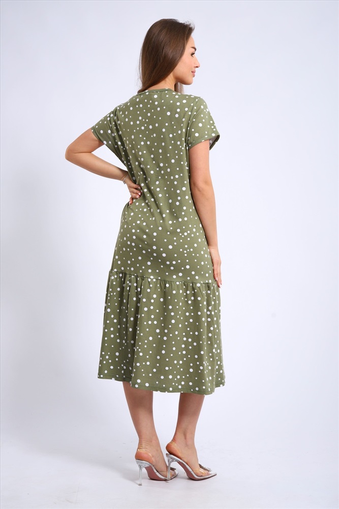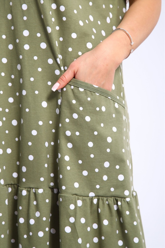 Состав: 100% Хлопок Модель: 160 Платье женское Тип товара: платье Материал: кулирка | кулирка Бренд: POLINA Длина: средняя длина Карман: накладные Отделка: с карманами | с воланами Рисунок: горошек Рукав: короткий рукав Сезонность: лето | осень | весна Силуэт: расклешенный | свободный Стиль: повседневный Воротник: без воротника Застежка: без застежки Платье женское выполнено из набивного трикотажного полотна кулирка. Платье свободного силуэта, с коротким рукавом. Вырез горловины намыс, накладные карманы. По низу оборка. Таблица размеров и веса