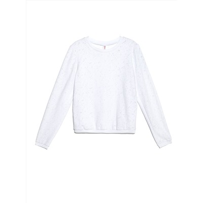 Фактурный свитшот с облегающими манжетами и притачным поясом хорошо садится на любой тип фигуры и прекрасно дополняет базовый женский гардероб.