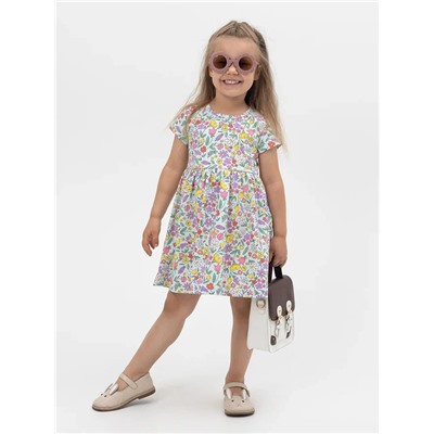 Струящееся летнее платье с цветами. Приталенный и расклешенный книзу крой придаёт особое очарование. Свободная посадка в сочетании с воздушной текстурой хлопка. Прелестная модель с отрезной юбочкой, с круговой сборкой по талии. Вырез горловины круглый, обработан бейкой из эластичного полотна в тон. Низ изделия и рукавов подвернут и прострочен двойной строчкой. С лицевой стороны в боковом шве вшивной элемент. У размера 92 на плечике застежка на 2 пробивные кнопки.