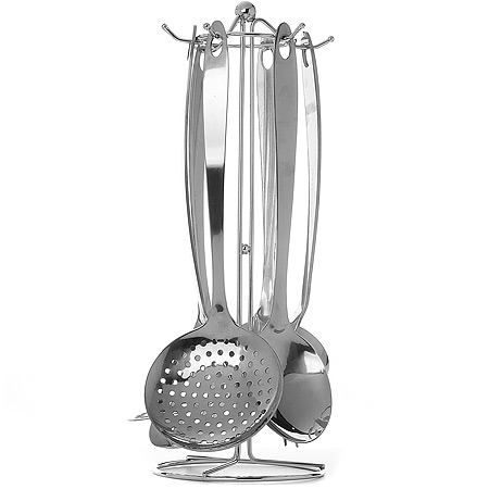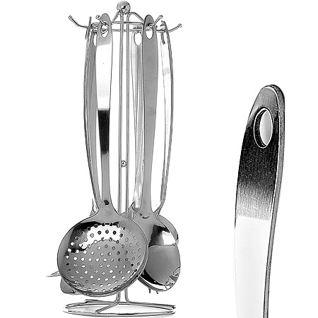Профессиональный кухонный набор MAYER&BOCH – это практичная и красивая посуда для приготовления, которая воплотит в жизнь любые ваши кулинарные фантазии. В набор входит 7 предметов: ложка для спаггетти, половник, шумовка, лопатка с прорезями, венчик, пресс для картофеля, подставка. Изделия имеют глянцевую полировку, на ручках отверстия для подвешивания. Высококачественная нержавеющая сталь, из которой выполнены рабочие поверхности, идеально подходит для приготовления пищи, предметы набора не окислятся со временем и не испортят вкус Ваших блюд. Также изделия имеют удобные ручки с отверстиями для подвешивания. Инструменты можно мыть в посудомоечной машине. Для удобного хранения набор комплектуется подставкой подставкой-стойкой, которая прекрасно впишется в любой интерьер. Кухонные принадлежности MAYER&BOCH - поможет вам определиться с подарком на Новый год, Рождество, День Рождения, это универсальный и полезный подарок маме, бабушке, друзьям.