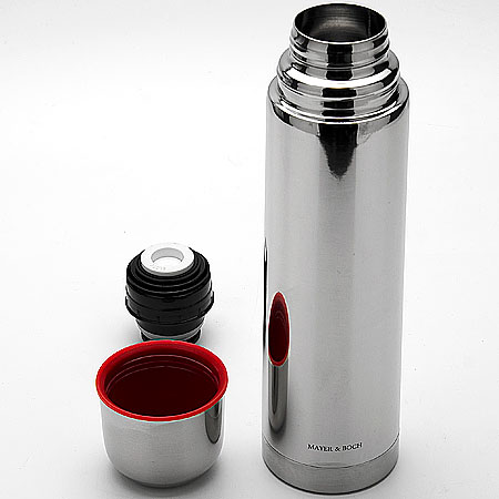 Термос MAYER&BOCH выполнен из качественной нержавеющей стали (CrNi 18/10), которая не вступает в реакцию с содержимым термоса и не изменяет вкусовых качеств напитка. Двойная стенка из нержавеющей стали сохраняет температуру на более длительный срок. Вакуумный закручивающийся клапан предохраняет от проливаний, а удобная кнопка-дозатор избавит от необходимости каждый раз откручивать крышку. Крышку с красным внутренним пластиковым покрытием можно использовать как чашку. Данная модель термоса прочная, долговечная и в то же время легкая. Стильный металлический термос понравится абсолютно всем и впишется в любой интерьер кухни. Легко и просто моется.