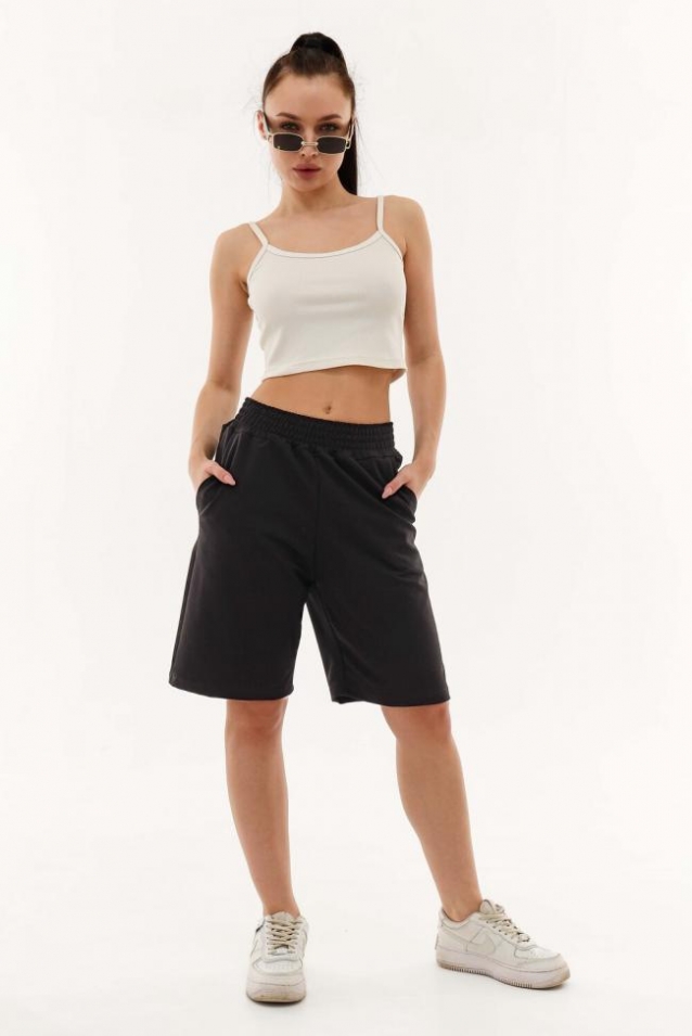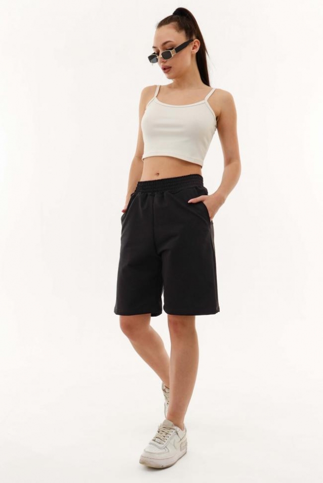 Стильные шорты-бермуды для путешествий, прогулок, фитнеса и повседневного использования. Особенностями данной модели являются высокая посадка и свободный крой, благодаря чему нет скованности движениям. Пояс прошит на поясной машине. Удобные карманы с отрезным бочком. Шорты-бермуды цвета петроль хорошо сочетаются с футболкой № 21580, на которой паучок изображён в такой же цветовой гамме.