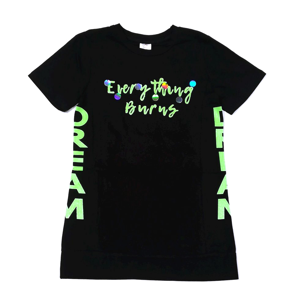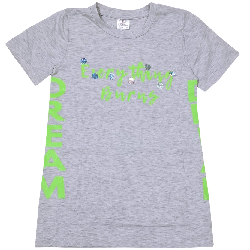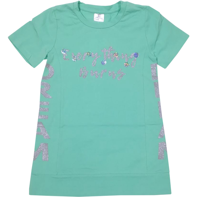 Доп. параметр: Короткий рукав, Удлинненный Страна: Турция Состав: хлопок 95%; эластан 5% Материал: Кулирка (трикотажное полотно) Описание и замерыТуника для девочки из эластичного х/б трикотажа, с искрящейся надписью на груди, украшенной голографическими пайетками. Горловина на тонком манжете, низ туники на широком манжете. Вертикальнве рельефы. По бокам крупные искрящиеся надписи.Размер 110: длина- 54 см, обхват груди- 70 см. Размер 116: длина- 57 см, обхват груди- 72 см. Размер 122: длина- 58 см, обхват груди- 74 см. Размер 128: длина- 61 см, обхват груди- 76 см. Размер 134: длина- 63 см, обхват груди- 78 см. Замеры выборочные, могут незначительно отличаться. Комментарии к товару