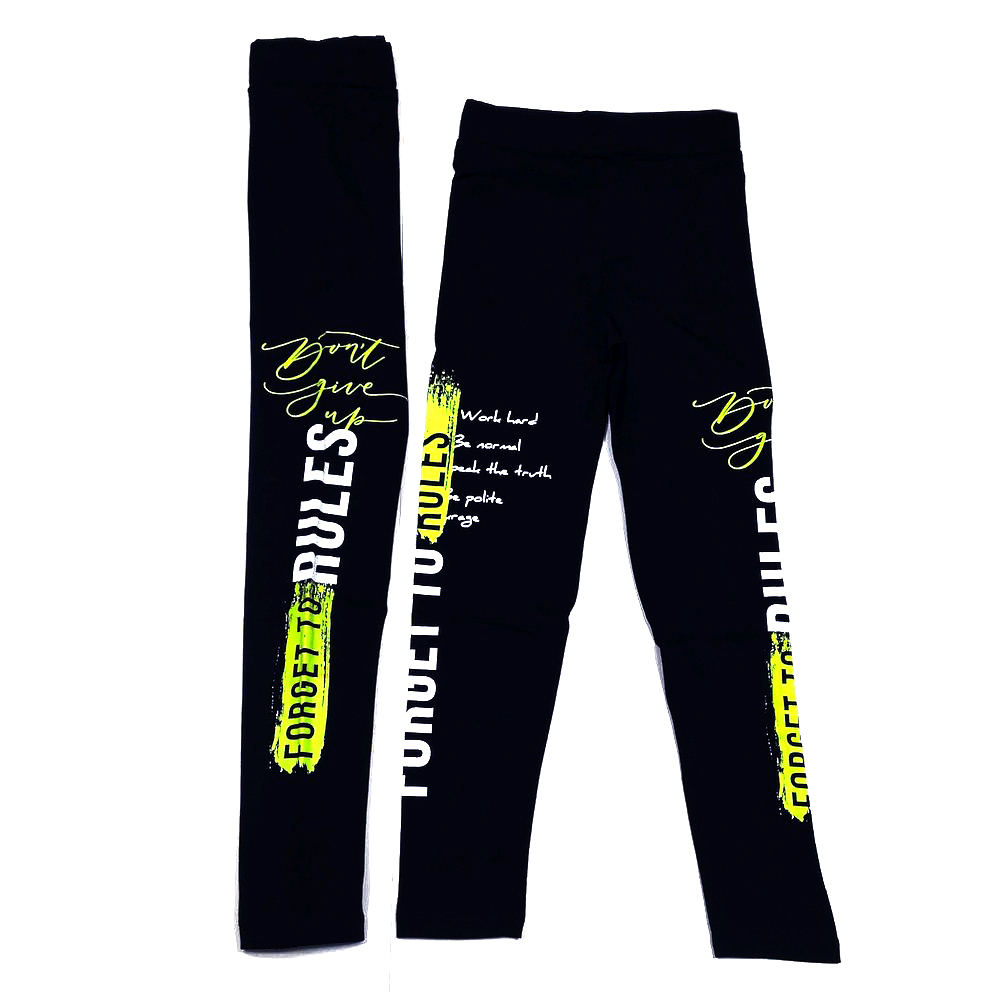 Лосины для девочки, из эластичного, х/б трикотажа, с яркими надписями. В поясе на закрытой резинке.