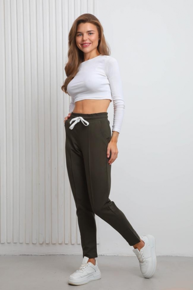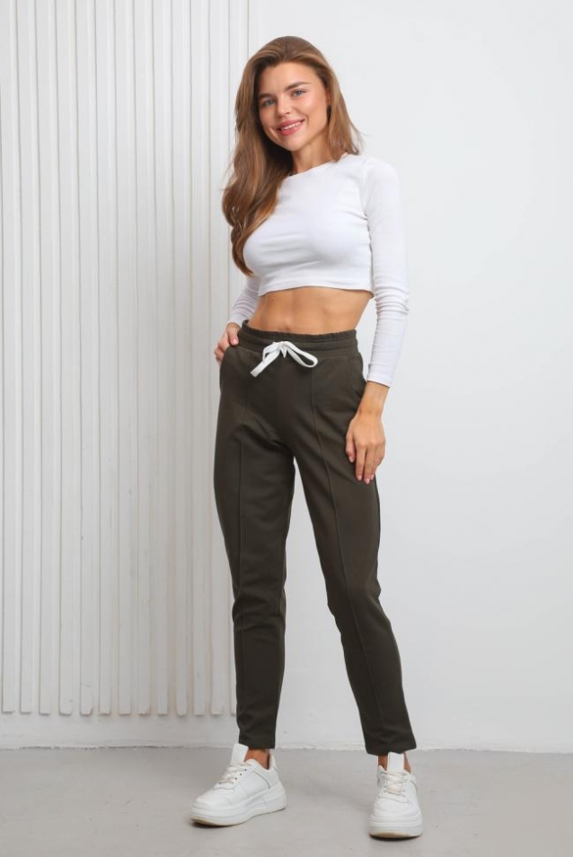 Спортивные женские брюки зауженные - идеальный выбор для активных девушек, которые ценят комфорт и стиль. Почувствуйте удобство и подчеркните свою индивидуальность с этой модной и функциональной моделью. Они выполнены из высококачественного турецкого материала. Брюки с высокой талией на резинке с внутренним шнурком, по бокам два кармана, также спереди декоративный шов. Штаны отлично подойдут для занятий спортом, прогулок или просто активного отдыха.