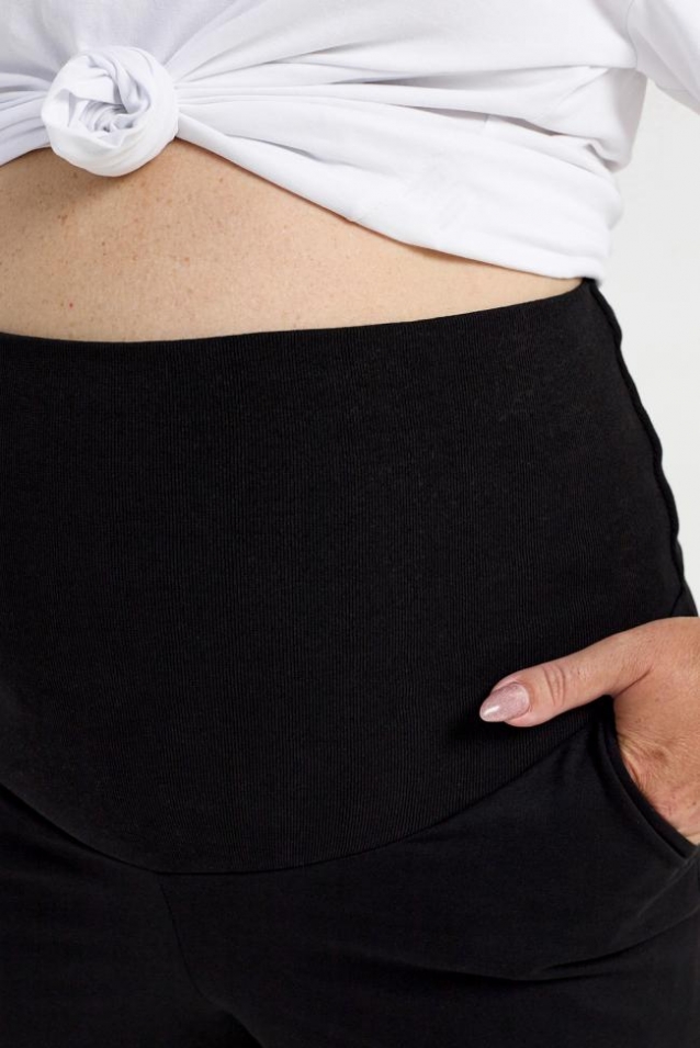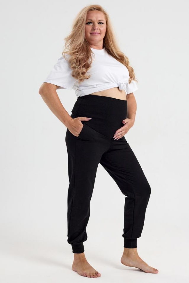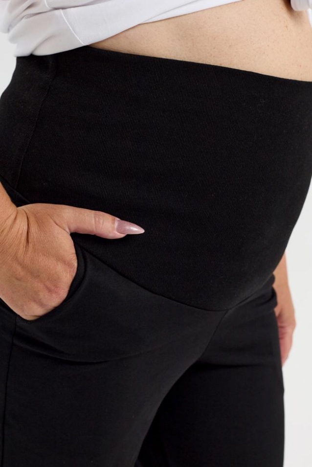 Стильные и комфортные брюки для беременных - самый удобный вариант одежды. Штаны с эластичным поясом, высокий трикотажный бандаж обладает поддерживающим эфектом и удобен на любом сроке беременности, два боковых кармана, низ на манжетах. Турецкая качественная ткань приятная к телу.