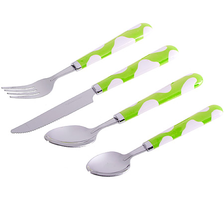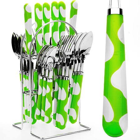 Набор столовых приборов MAYER&BOCH на 6 персон выполнен из прочной нержавеющей стали и цветного пластика. В набор входит 25 предметов: 6 столовых ножей, 6 столовых ложек, 6 столовых вилок и 6 чайных ложек и металлическая подставка. Приборы имеют удобные эргономичные пластиковые ручки. Прекрасное сочетание свежего дизайна и удобство использования предметов набора придется по душе каждому. Предметы набора расположены на подставке с секциями для каждого вида приборов. Набор столовых приборов подойдет для сервировки стола, как дома, так и на даче и всегда будет важной частью трапезы, а также станет замечательным подарком. Подходит для мытья в посудомоечной машине.
