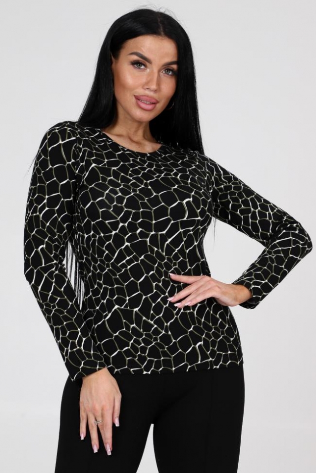Лонгслив женский из вискозы прилегающего силуэта. Горловина в виде лодочки. Рукав длинный.