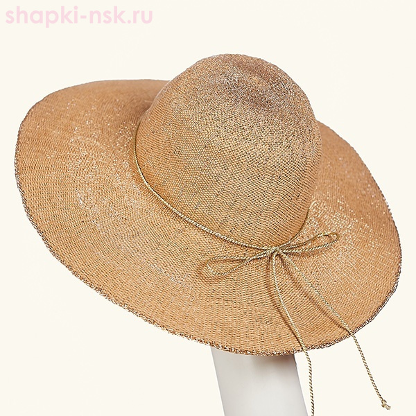 Состав: 90% бумага 10% полиэстер Подклад: Без подклада Оптовая цена - за шт. в линейке: 0 Оптовая цена - за шт. в упаковке: 0 Стильная летняя шляпа с большими полями. Особенность этой шляпы в ее плетении, основой которого является изящный металлизированный жгут. Прекрасный аксессуар для прогулок по городу и пляжного отдыха. Комментарии к товару