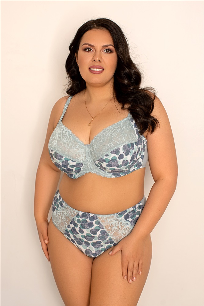 Мягкая чашка из эластичного кружева и эластичной микрофибры. Чашка внутри дублирована хлопком. В модели предусмотрены подгрудные косточки. Очень удобная модель для ежедневного использования. Верх чашки и пояс бюстгальтера выполнены с дополнительным нижним слоем из эластичной сетки с целью улучшения формоустойчивости, что актуально для больших размеров.