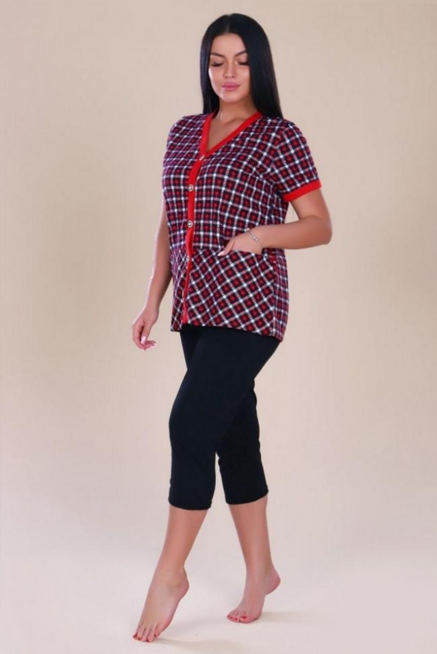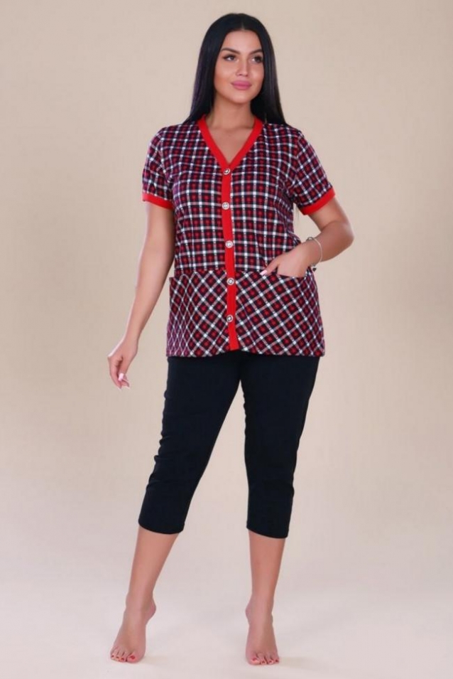 Такой комплект действительно идеально подходит для повседневной носки, дачи или домашнего использования. Поскольку у вас будут черные бриджи из хлопка, они обеспечат комфорт и свободу движений, а клетчатая туника с накладными карманами добавит стильный акцент. Застежка на пуговицы сделает верх более универсальным его можно будет носить как застёгнутым, так и расстёгнутым, что также позволит играть с образом. Такой костюм можно дополнить сандалиями или кедами для создания расслабленного образа. Аксессуары, такие как легкая сумка или солнечные очки, могут завершить стильный повседневный лук. Если вы ищете новые идеи для сочетания, тогда приобретайте скорее этот костюм.