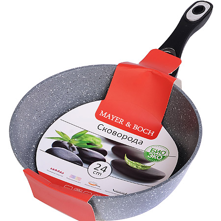 Самая вкусная еда — приготовленная с душой и любовью. С MAYER&BOCH и простые блюда, и кулинарные изыски получаются невероятно вкусными, сочными и неповторимыми. Пусть процесс готовки приносит вам истинное удовольствие, в этом вам поможет качественная глубокая сковорода сотейник 24 см с антипригарным покрытием и эргономичной и термостойкой ручкой. В большой сковороде сотейнике для кухни, на завтрак можно пожарить без масла блины, оладьи, панкейки или яичницу. Благодаря высоким стенкам легко потушить овощное рагу. А толстое индукционное дно — это идеальное решение для ваших кулинарных шедевров, позволит готовить самые вкусные и сочные стейки или котлеты. Удобная и универсальная сковородка сотейник из литого алюминия, идеально подходит для жарки и тушения на всех типах плит: газовой, индукционной, электрической, керамической, галогеновой. Керамическое покрытие из мраморной крошки, без вредных соединений и примесей, не даст блюду подгореть даже если готовить при сильном жаре. Ручка из бакелита не нагревается и не скользит в руке. Это незаменимый кухонный инвентарь для приготовления пиши. Сотейник с мраморной крошкой здорово поможет хозяйке сэкономить время. Ведь на нем практически не остается следов еды после готовки. Достаточно просто смахнуть остатки еды салфеткой, можно протереть губкой, легко моется под струей воды. Подходит для мытья в посудомоечной машине, при этом сохраняет свои антипригарные свойства. Для чистки также подойдет деликатное моющее средство и мягкая губка без абразивного слоя. Алюминиевая сковорода выполнена из высокотехнологичного материала, несмотря на свой легкий вес сковородка достаточно прочная, и не склонна к деформации даже при падении с высоты. Сделайте отличный подарок на день рождения или Новый год любимой маме, бабушке, сестре и подруге. Экспериментируйте и вдохновляйтесь новыми рецептами, а кухонные принадлежности от бренда MAYER&BOCH помогут воплотить даже самые смелые кулинарные фантазии!