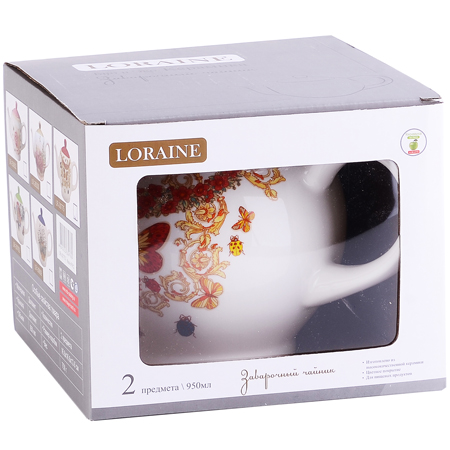 Заварочный чайник с крышкой LORAINE поможет вам в приготовлении вкусного и ароматного чая, а также станет украшением вашей кухни. Он изготовлен из доломитовой керамики в красивых тонах и оформлен красочным изображением. Нежный рисунок придает чайнику особый шарм, чайник удобен в использовании и понравится каждому. На крышке чайника есть выступ, удерживающий ее от падения при наклоне. В носике чайника есть перегородка с несколькими небольшими отверстиями, которая позволяет пропускать жидкость задерживая крупные чаинки. Такой заварочный чайник станет приятным и практичным подарком на любой праздник. Подходит для мытья в посудомоечной машине.