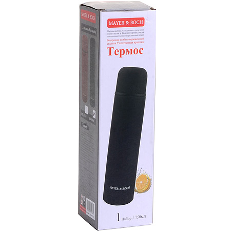 Термос MAYER&BOCH выполнен из качественной нержавеющей стали, которая не вступает в реакцию с содержимым термоса и не изменяет вкусовых качеств напитка. Двойная стенка из нержавеющей стали сохраняет температуру на срок до 24-х часов. Вакуумный закручивающийся клапан предохраняет от проливаний, а удобная кнопка-дозатор избавит от необходимости каждый раз откручивать крышку. Крышку можно использовать как чашку. Цветное покрытие обеспечивает защиту от истирания корпуса. Данная модель термоса прочная, долговечная и в тоже время легкая. Матовое покрытие поверхности корпуса. Стильный металлический термос понравится абсолютно всем и впишется в любой интерьер кухни. Легко и просто моется.