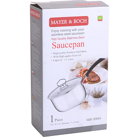 Кастрюля-ковш MAYER&BOCH изготовлена из высококачественной нержавеющей стали, которая придает ей привлекательный внешний вид, обеспечивает легкую очистку и долговечность. Крышка, выполненная из термостойкого стекла, позволяет следить за процессом приготовления пищи. Крышка оснащена отверстием для выхода пара и металлическим ободом. Подходит для всех типов плит, включая индукционные. Подходит для мытья в посудомоечной машине. В комплекте 2 предмета: ковш, крышка.