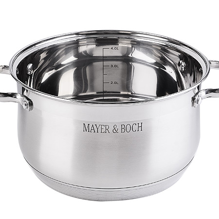 Кастрюля MAYER&BOCH — это элегантное и надёжное решение для вашей кухни, предназначенная для истинных ценителей вкуса. Благодаря объёму в 5,1 литра и крышкой, вы сможете наслаждаться процессом приготовления любимых блюд, не опасаясь ожогов. Толстые стенки и многослойное капсульное дно обеспечивают равномерное распределение тепла, что гарантирует идеальное приготовление пищи. Удобные ручки, которые не нагреваются, делают процесс готовки максимально комфортным и безопасным. Эта кастрюля — ваш незаменимый помощник в искусстве приготовления пищи! С ней вы сможете творить чудеса на кухне и радовать себя и своих близких изысканными шедеврами. Изготовленная из высококачественной нержавеющей стали с зеркальной поверхностью, она обеспечит долговечность и сохранение вкусовых качеств продуктов. Внутри предусмотрена удобная мерная шкала, которая позволит точно отмерить нужное количество ингредиентов. Она легка в уходе и не требует больших усилий при мойке. Возможность мытья в посудомоечной машине экономит ваше время и силы. Можно использовать на индукционных, электрических, стеклокерамических панелях и газовой плите. Кастрюля из нержавеющей стали — это как волшебная палочка для повара. Она может всё: варить, тушить, томить и жарить. Готовьте в ней каши, молочные блюда, овощи, яйца, мяско, наваристые супчики и бульоны, макарончики, компоты, варенье, соусы, подливы и многое другое. Кастрюля для индукционной плиты быстро нагревается и равномерно передает нагрев на всю свою поверхность индукции, благодаря особой конструкции дна. Обладает рядом преимуществ: она укомплектована крышкой, имеет высокие стенки и толстое дно, абсолютно безопасна для здоровья, не меняет цвет со временем и по доступной цене. Использование передовых технологий и высококачественных материалов гарантирует исключительное качество этой модели. Эта красивая посуда, очень полезный и нужный подарок на День рождения, Новый год, на новоселье, для мамы, бабушки или подруги.