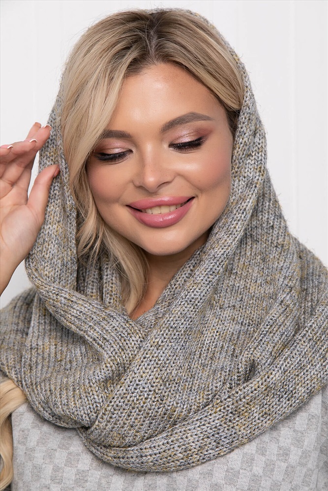 Гладкий и мягкий вязаный снуд легко драпируется в два оборота. Является альтернативой шапкам и капюшонам. Базовый оттенок снуда позволяет сочетать его практически с любым цветом верхней одежды.