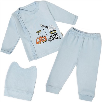 Доп. параметр: Длинный рукав Страна: Турция Материал: Интерлок (трикотажное полотно) Описание и замерыКомплект состоящий из кофточки, штанишек и шапочки.Кофточка прямого кроя. Передняя половинка украшена принтом "Стройка". Горловина и низ рукавов обработаны трикотажным кантом из основного полотна. Длинный втачной рукав. Застегивается на кнопки с правой стороны, по всей длине. Низ изделия обработан швом вподгибку и прошит двойной строчкой. Штанишки свободного кроя. В поясе на эластичной внутренней резинке. Низ на манжетах из основного полотна. Шапочка на манжете из основного полотна. Верх выполнен в форме ушек. Размер 62 Кофточка: длина - 28 см, обхват груди - 44 см, длина рукава - 20 см. Штанишки: длина - 37 см, обхват талии - 30-40 см. Шапочка: обхват головы - 28-35 см. Замеры выборочные, могут незначительно отличаться. Комментарии к товару