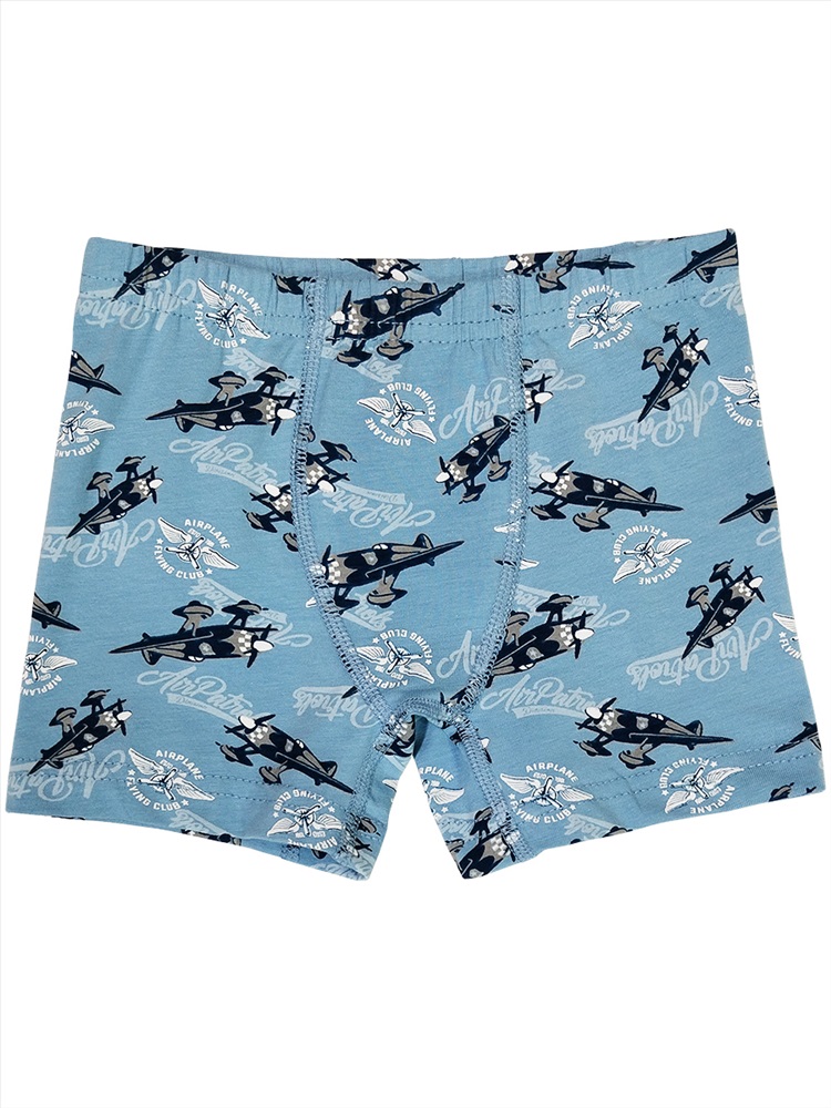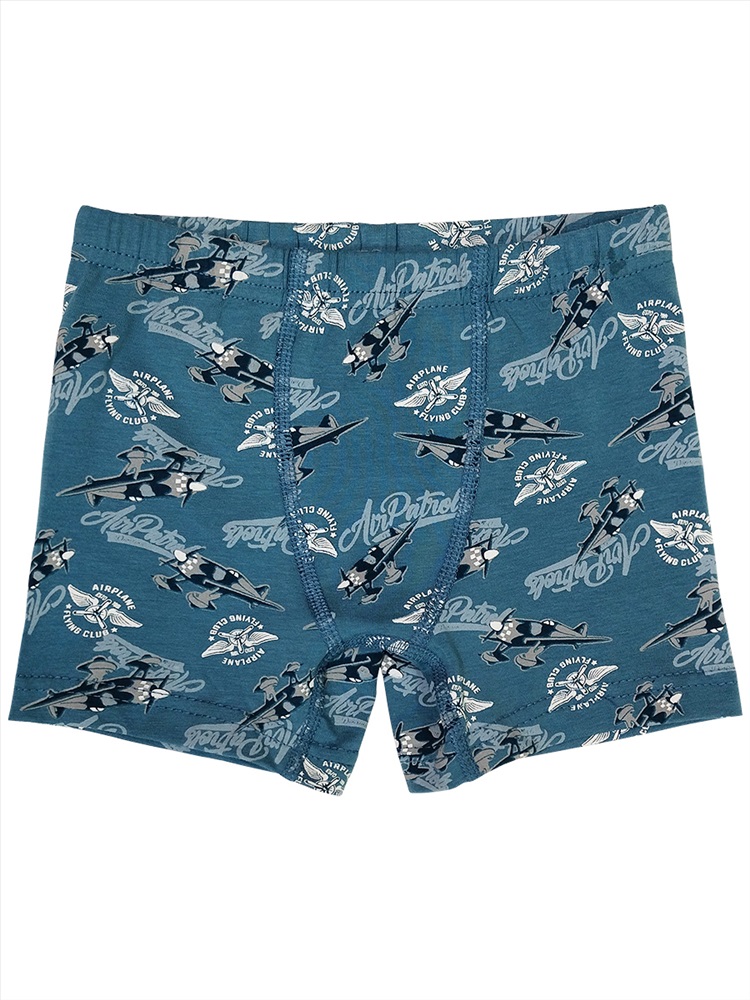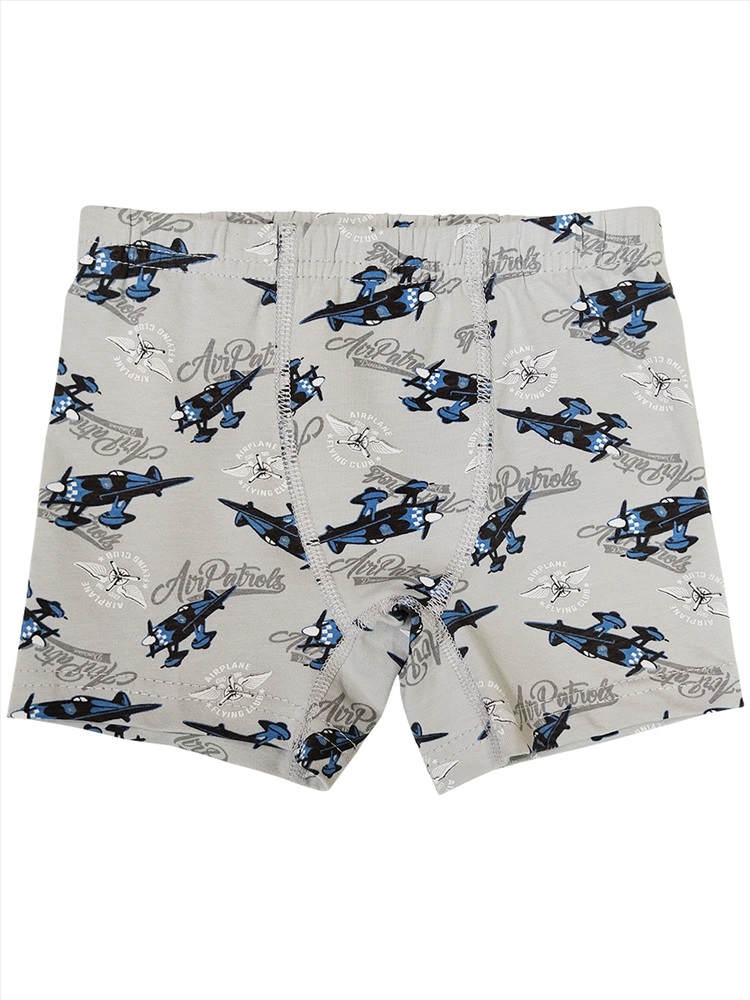 Трусики-боксеры для мальчика, из эластичного х/б трикотажа, с принтом "воздушный патруль". В поясе на закрытой резинке.