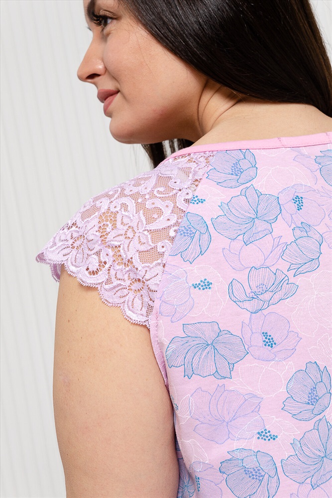Производитель: Натали; Российский размер: 50; Обхват груди: 100; Обхват талии: 79; Обхват бедер: 106; Артикул поставщика: 42290; Ткань: кулирка; Состав: 100% хлопок; Сезон: Осень, Зима, Весна, Лето; Год: 2024 Сорочка женская с кружевом, 100% хлопок. Сорочка свободного кроя, горловина обработана окантовкой, переходящей в декоративную капельку на завязках, рукава реглан из кружева, низ сорочки обработан на плоскошовной машине. Легкая в уходе.