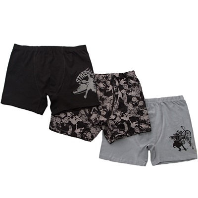 Боксеры для мальчика, из эластичного х/б трикотажа. В поясе на закрытой резинке. Различные принты: из трикотажа с рисунками/ однотонные с принтом на одной штанине.