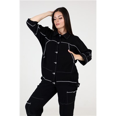 Производитель: Натали; Российский размер: 48; Обхват груди: 96; Обхват талии: 75; Обхват бедер: 102; Артикул поставщика: 9148; Ткань: муслин; Состав: хлопок 100%; Сезон: Лето; Год: 2024 Костюм женский: Куртка и брюки. Куртка прямого силуэта, воротник втачной, на полочке кокетка и накладной карман типа кенгуру, застежка на планке на петли - пуговицы (петли с глазком). Рукав цельнокроенный со швом с манжетой и хлястом. Внизу полочки пояс, сбоку пояса резинка. На спинке кокетка, по центру декоративная складка с двумя пуговицами. Внизу бокового две декоративные паты с пуговицами. Брюки свободные по бедрам, внизу передние половинки брюк собраны на резинку. Передняя часть брюк состоит из трех частей. В верхней части внутренние накладные карманы. Накладной карман на верхней левой и средней правой частях брюк. Пояс выполнен на многоигольной машине.