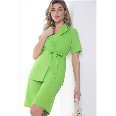 Настало время легких костюмов! На пике популярности в этом сезоне комплект из свободного жакета и прямых шорт. Жакет свободного кроя с поясом из основной ткани, который входит в комплект. Рукав укороченный, втачной. Шорты классические на резинке.