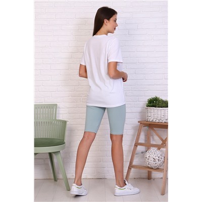 Молодежный костюм футболка и велосипедки. Футболка из кулирки 100% хлопок свободного кроя, стиль oversize, втачным коротким рукавом горловина округлой формы. На полочке изделия принт. Низ рукава и низ изделия подгибка. Велосипедки из кулирки с лайкрой облегающего силуэта без бокового шва. Низ изделия подгибка.