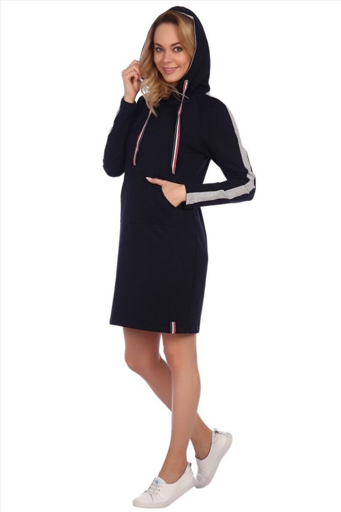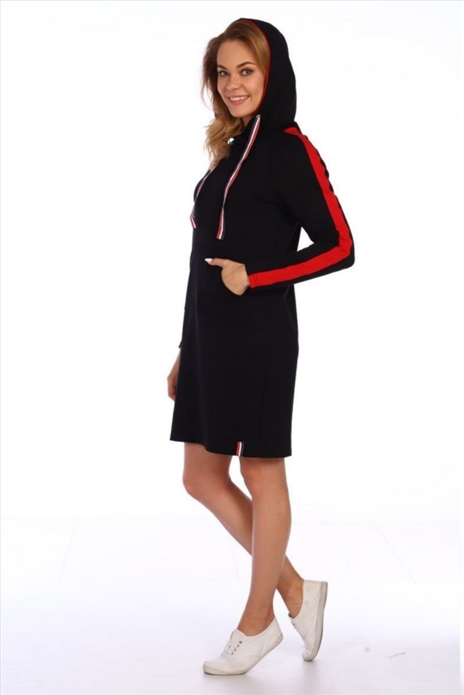 Это стильное спортивное платье из мягкого футера идеально подойдет для активного отдыха и повседневной носки. Длина миди обеспечивает комфорт и свободу движений, а капюшон добавляет практичности и уютности. Длинные рукава с вставками создают современный и динамичный образ, а два вместительных кармана позволяют удобно хранить мелочи. Идеальный выбор для тех, кто ценит комфорт и стиль в повседневной одежде.