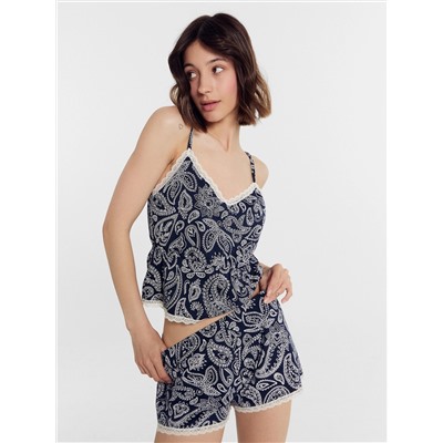 Пижамный комплект женский из высококачественных материалов. Комфортные мини-шортики и полуприлегающий топ с глубоким декольте гарантируют полную свободу движений. В составе полотна натуральный хлопок и шелковистый модал. Комфортная и невероятно красивая модель для сна, отдыха и домашних дел. Широкий размерный и цветовой ряд. Подойдет для девушек plus-size. Женская пижама – это не только уютная одежда для сна, но и модный элемент гардероба, который помогает женщине выглядеть привлекательно и женственно в домашней обстановке. Рекомендуем эту стильную пижамку!