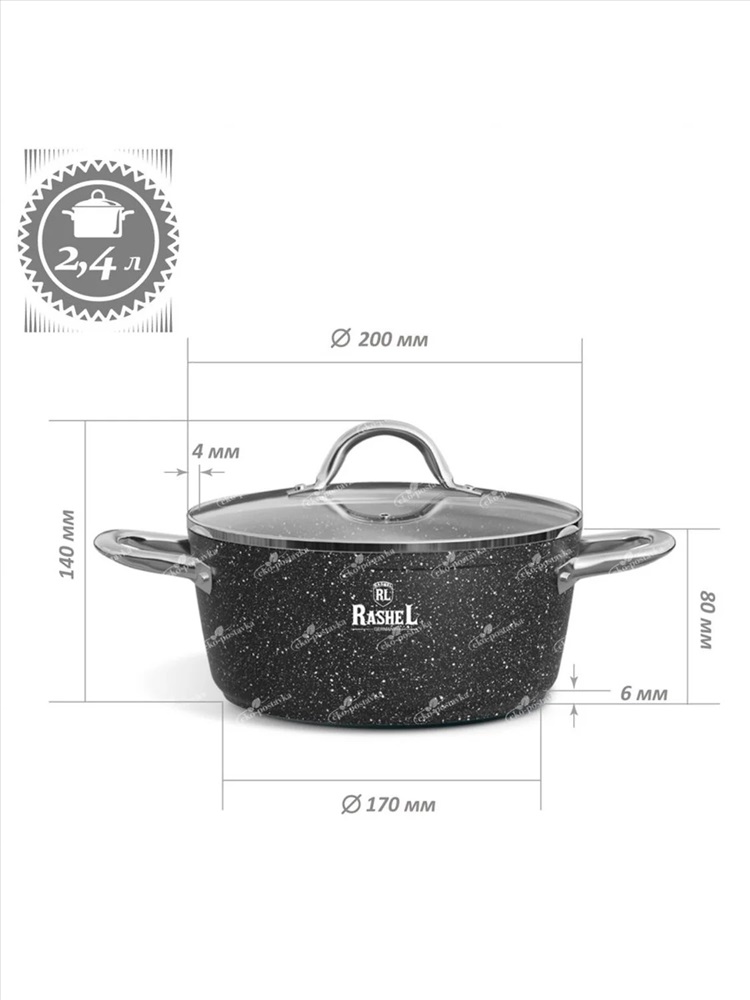 Жаровня кастрюля с антипригарным гранитным покрытием со стеклянной крышкой 20 см и объемом 2,4 литра. Изготовлена из высококачественного алюминия. Внутреннее и внешнее антипригарное покрытие "титан-гранит". Кастрюля литая отличается долговечностью и способностью быстро и равномерно нагреваться и аккумулировать тепло, что приводит к экономии энергии и способствует быстрому приготовлению пищи. Функциональность увеличивает стеклянная крышка из термостойкого стекла с силиконовым ободком. Подходит для всех видов плит, включая индукционную. Упаковка - подарочная коробка с пластиковой ручкой. Допускает использование только деревянных и силиконовых кухонных предметов. Преимуществом кастрюли с толстым дном является то, что во время варки к ее дну не прилипают крахмальные и мучные изделия. Достаточно мягкой губки с мыльной водой, чтобы посуда снова была готов к использованию. Посуда линии Маруся с внутренней стороны покрыта антипригарным покрытием увеличенной прочности. Жаровня из алюминия с внешней стороны имеет термостойкое декоративное покрытие. Имеет ровное, окрашенное дно, которое обеспечивает идеальное прилегание дна посуды к плите для более быстрого и равномерного нагрева посуды, при этом не царапает нежную поверхность стеклокерамической плиты. Кастрюля жаровня с антипригарным покрытием - идеальное соотношение демократичной цены, яркого дизайна и проверенного покупателями качества. Просьба обратить внимание, что на коробке и в описании указан заводской (общий) объем посуды, который отличается от рабочего (полезного) на + 0,5 литров в зависимости от литража. Просим это учитывать при покупке любых кастрюль и наборов. Лучший подарок подруге девушке любимой сестре дочке папе брату другу парню коллеге соседке соседу любимому свекрови тёще на День Рождения 8 Марта 14 февраля просто так Пасха 9 мая новоселье переезд свадьба годовщина юбилей.