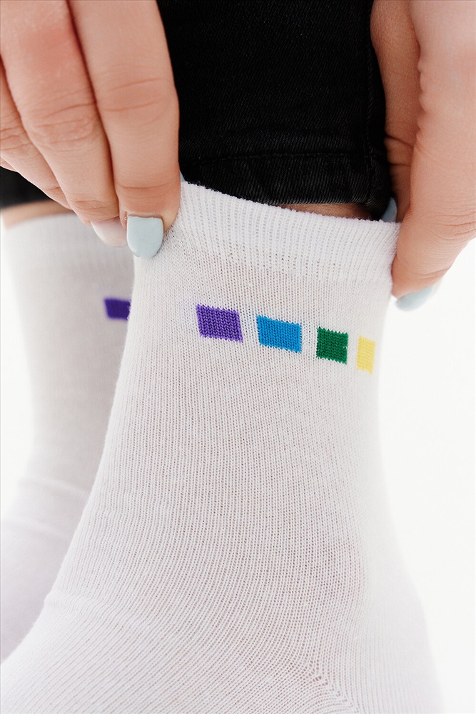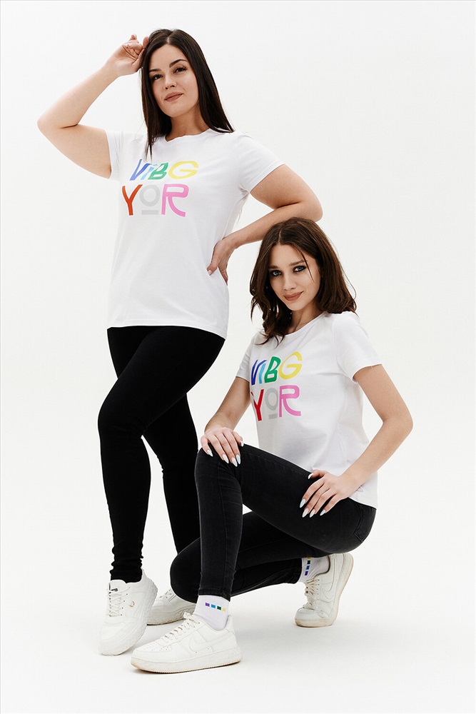 Подарочный набор СЕМИЦВЕТ. Представлен в 2 цветах. Женская футболка с принтом и носки с принтом подчеркнут вкус и чувство стиля. Подарочный набор упакован в крафтовую коробку с тематическим принтом. Футболка из хлопка и лайкры подойдет для повседневной носки и для выхода из дома. Футболку будет удобно носить навыпуск или заправлять, отлично сочетается с юбкой, брюками с джинсами, а также можно надеть под пиджак, жакет или кардиган. Футболка будет отлично сидеть практически на любой фигуре. Носки подойдут к любой одежде и обуви. Изготовлены из высококачественного хлопка, который отлично впитывает влагу, пропускает воздух и подходит даже для самой чувствительной кожи. Хорошо сохраняют форму и цвет, устойчивы к истиранию. Подарочный набор СЕМИЦВЕТ будет отличным подарком второй половинке, близкой подруге, маме или сестре. На моделях 42 и 48 размеры. Размер носков 23-25.