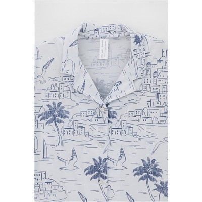 Легкая рубашка с короткими рукавами на пуговицах из набивного трикотажа. Гладкий материал приятен к телу и позволяет коже дышать.