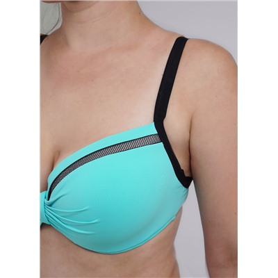 Костюм купальный женский из полиамида с эластаном. Лиф с классическими чашечками, с декоративными элементами спереди, в виде контрастных полос, на регулируемых бретелях. Трусы макси высокой посадки,так же с контрастными элементами.
