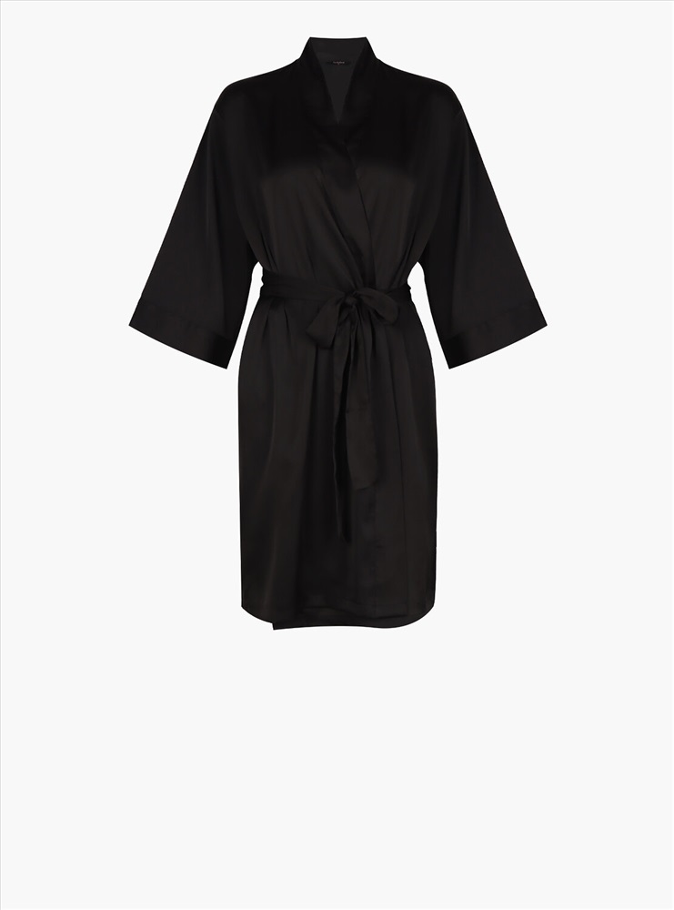 Женский халат от Indefini, изготовленный из гладкого полиэстера, мягкий и приятный на ощупь. Свободный крой и дизайн на запах обеспечивают максимальное удобство и легкость движений. Регулирующий пояс, пришитый сзади, помогает легко подогнать халат по фигуре, создавая комфортную посадку. Этот халат станет идеальным выбором для вечернего расслабления или уютного утра, добавляя изысканности повседневному домашнему гардеробу.