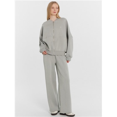Толстовка оверсайз. Горловина круглой формы с воротником стойкой из рибаны. Шов втачивания воротника по спинке закрыт тесьмой хб. Рукав втачной, длинный с отрезными манжетами из рибаны. Линия плеча спущена, пройма углублена. По переду и спинке отрезная горизонтальная кокетка. Центральная застежка на тесьму молнию. По низу толстовки отрезной пояс из рибаны.