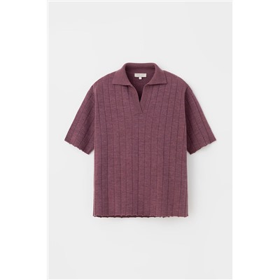 Поло свободного силуэта с короткими рукавами из полушерстяной пряжи. Спущенное плечо и прямой силуэт придают изделию свободный объем.