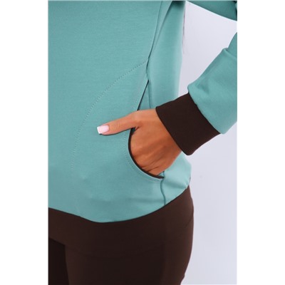 Спортивный женский костюм из эластичного футера. Кофта прямого силуэта на молнии с воротником - стойка, рукав втачной, по бокам карманы, на поясе манжет. Брюки классического кроя без карманов на притачном поясе.